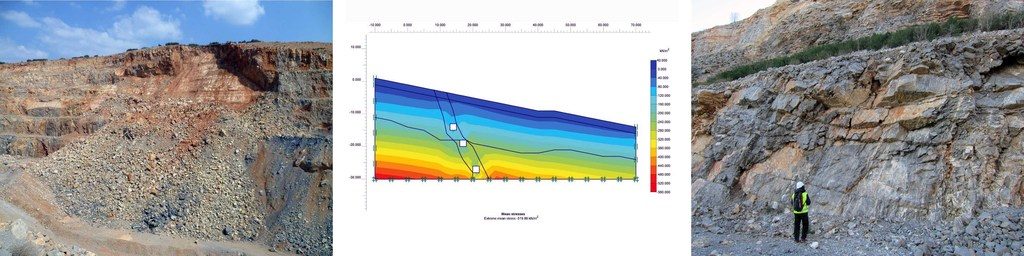 – Pour les fronts de carrière et mines à ciel ouvert : inspection des fronts et détection des secteurs instables. Préconisations pour la stabilisation et la mise en sécurité. Dimensionnement du profil d’exploitation stable.