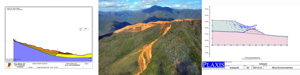 Pour réaliser ces études, MICA Environnement dispose d’outils de calculs et de modélisation performants, tel que TALREN, PLAXIS (calculs en éléments finis), Logiciels de trajectographie, logiciel de calcul en mécanique des roches.
