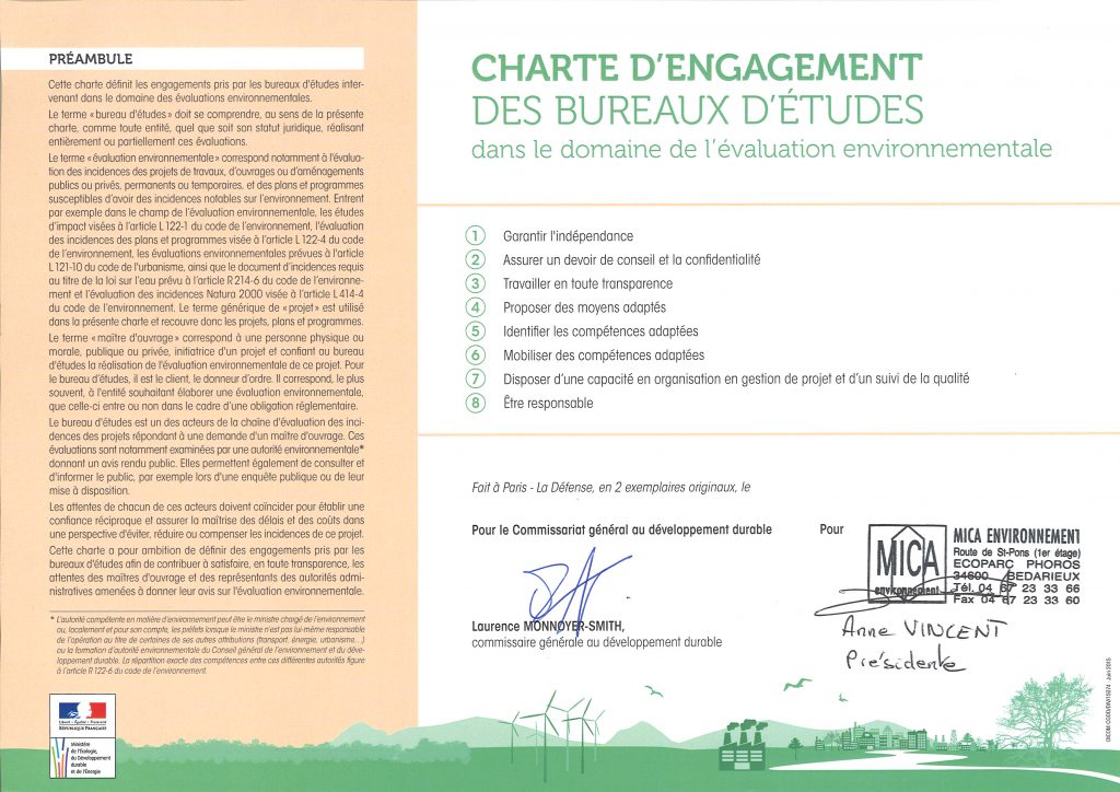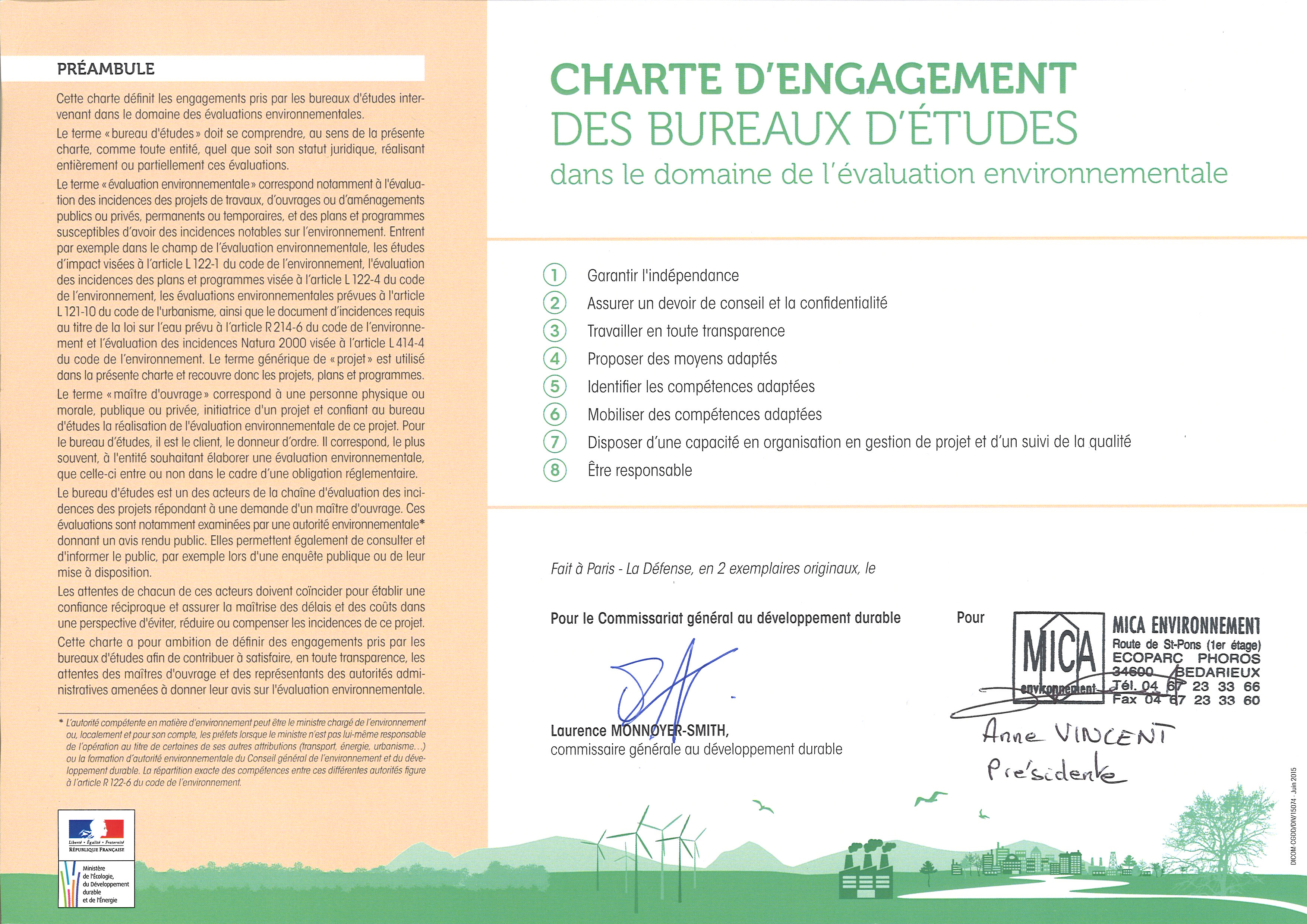 MICA Environnement a signé la charte d’engagement des bureaux d’études dans le domaine de l’évaluation environnementale.